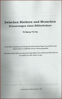 Wolfgang Theilig wurde 1934 in Zeulenroda im Thüringer Vogtland geboren. Schulbesuch bis 1952. In dieser Zeit erlebte er den Zweiten Weltkrieg, die kurze Zeit der US- Besatzung, den Einmarsch der Sowjetarmee, die Gründung der DDR. Danach Ausbildung zum Bibliothekar an Allgemein-Öffentlichen Bibliotheken durch das Studium an der Fachschule für Bibliothekare in Leipzig bis 1956. Erste Arbeitsorte nach dem Staatsexamen waren Meiningen und Suhl. Ab 1959 in der Stadt- und Kreisbibliothek Greiz bis zum nicht ganz freiwilligen Ausscheiden 1991. Mit 57 Jahren in „Altersübergang“, eine Art von Arbeitslosigkeit de luxe, ab 1994 Rentner.